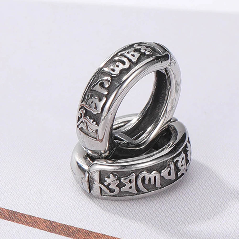 おしゃれなステンレス製のバネ式のノンホールピアスに梵字(ボンジ)をデザインした人気のクリップタイプのイヤリング。