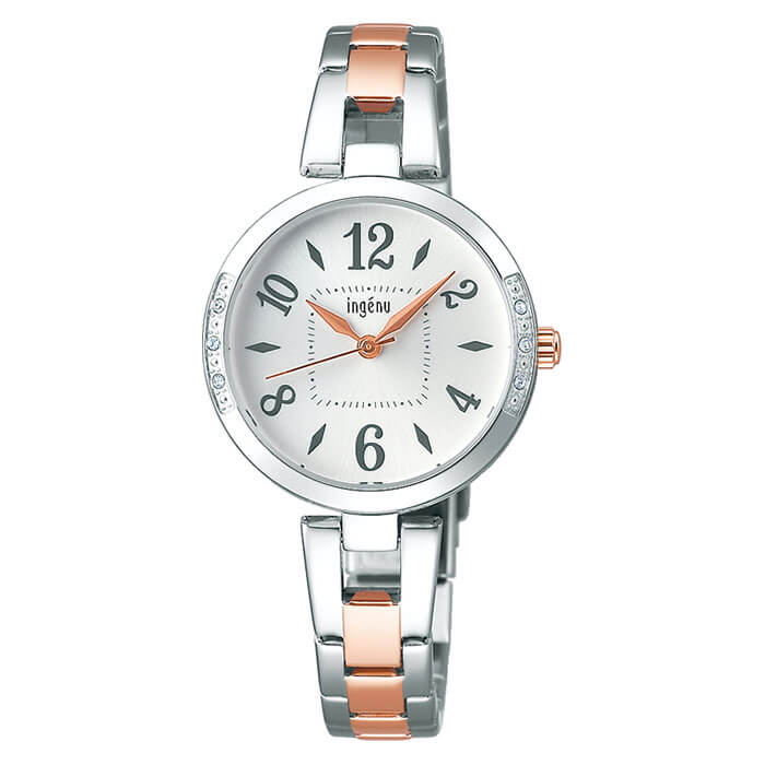 文字盤の色使い、ケースのスワロフスキーが高級感とさりげない華やかさをまとっています。