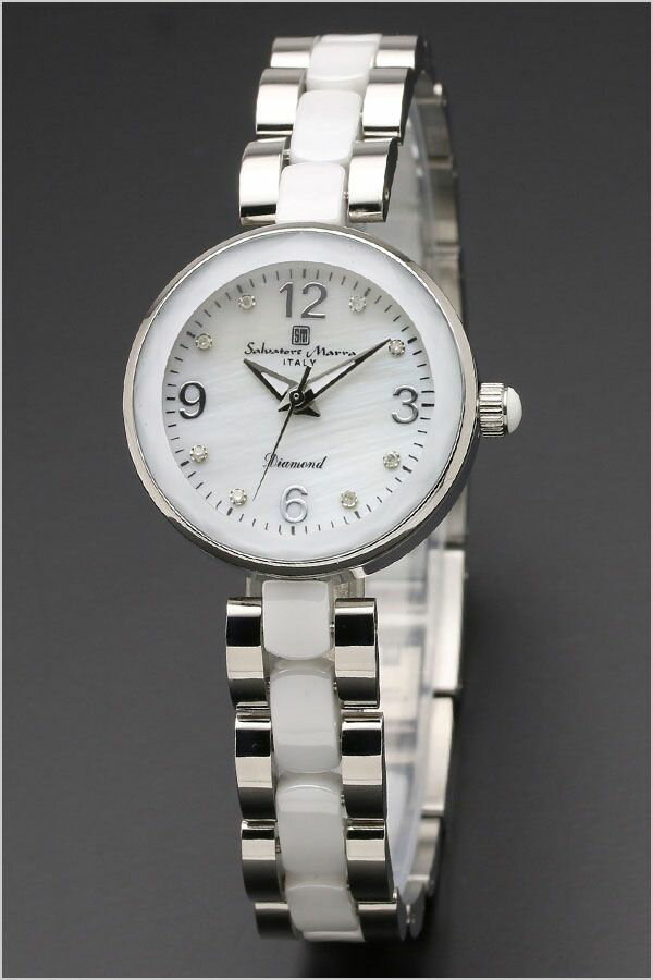 型番 SM17153-SSWHA ケース材質:ステンレススティールサイズ約:径21mm重さ約:43gベルト材質:ステンレススティール セラミックカラー:シルバーベルト腕周り最大:18cmムーブメントクオーツ(電池式)機能留め金:二つ折れ式バックル風防素材:ミネラルクリスタルガラス8ポイントダイヤモンドMOP文字盤ベルトアジャスター付きカットガラス防水機能防水性:日常生活用防水付属品SALVATOREMARRA専用BOX保証書取扱説明書※説明書・保証書に関して入荷時期により仕様、内容が一部異なる場合がございます。