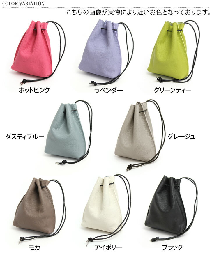 送料無料 選べる8カラー★リアルレザー巾着ハンドバッグ レディース ショルダーバッグ トートバッグ 小さめ ミニ 巾着バッグ カラフル ポーチ 肩掛け 本革 牛革 カウレザー ドロスト ポシェット 2way 鮮やか 軽量 メール便